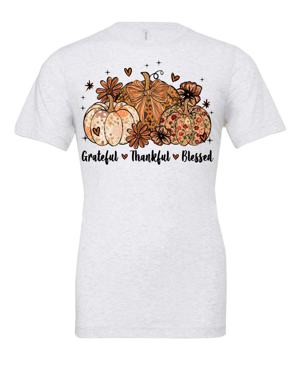 Express gratitude this season with the "Greatful Thankful Blessed" graphic design, available as a comfortable t-shirt or cozy crewneck. Both options showcase warm fall vibes and a Thanksgiving-ready message, making them perfect for celebrating moments of thankfulness. Choose the breathable ease of the t-shirt or the snug warmth of the crewneck to suit your style and stay comfortable throughout the season.