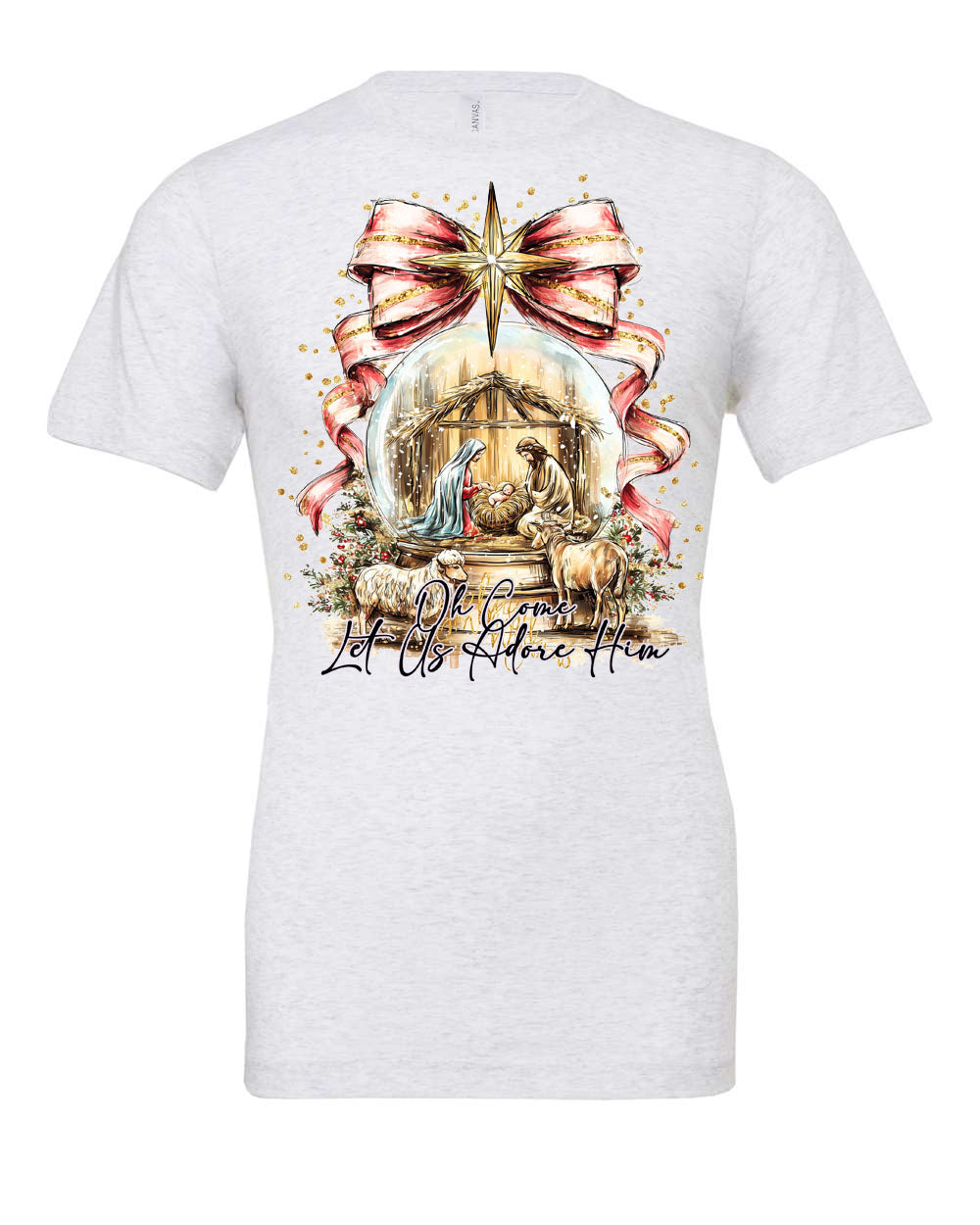 Oh Come Let Us Adore Him—a faith-centered Christmas essential featuring a striking graphic design. Available in both classic t-shirt and comfortable crewneck styles, this piece celebrates the season's spiritual meaning with timeless elegance. Choose from multiple color options to match your holiday wardrobe and personal style. Perfect for Christmas gatherings, church services, or festive family moments, this design brings together quality craftsmanship and meaningful expression. Make this devotional graphic a cornerstone of your seasonal collection.